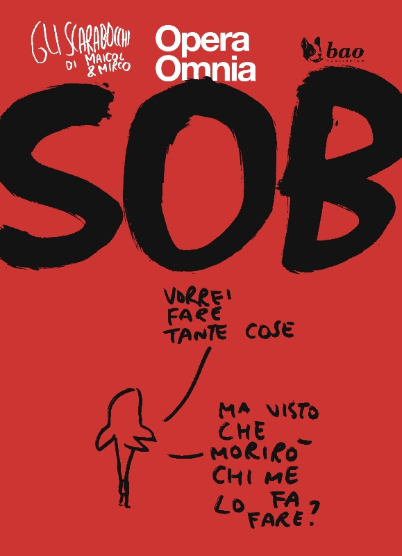 Iniziata con ARGH, oggi prosegue con SOB, il secondo strepitoso volume della raccolta integrale dell’Opera Omnia de Gli Scarabocchi di Maicol & Mirco il fumetto più dissacrante, illuminante, un’epopea esistenziale e profondamente filosofica senza uguali nel fumetto mondiale. Entrambi i volumi si avvalgono di un book design studiato da LRNZ, ma se il primo è arricchito dall’introduzione di Adriano Ercolani, questo secondo volume è introdotto dalla penna di Alessio Trabacchini. In questa occasione li vedremo disegnare dal vivo per il concerto di Lili Refrain, la chitarrista, compositrice e performer romana, con la quale ha collaborato in più occasioni in particolare per la piece teatrale de Gli Scarabocchi, per cui ha composto la colonna sonora. In questa occasione Refrain porterà in concerto il suo ultimo progetto, il poster audio “ULU” uscito ad ottobre.