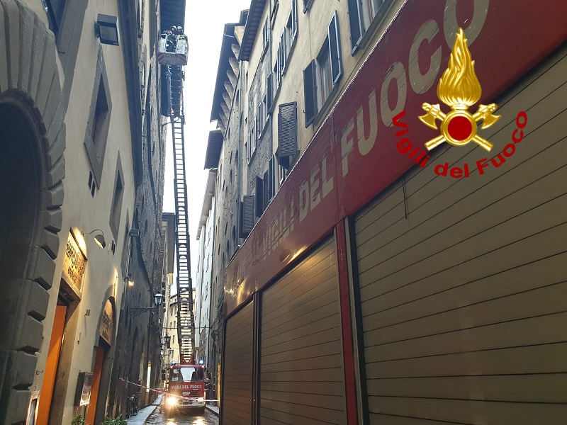 I vigili del fuoco sono intervenuti nel comune di Firenze, in Borgo Santi Apostoli, per la verifica di intonaco pericolante a seguito della caduta di alcune parti.