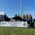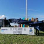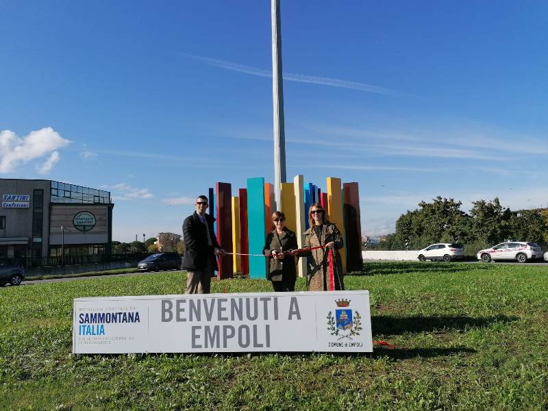 'Benvenuti a Empoli', è il messaggio che accompagna l'installazione che vivacizza la rotatoria adottata da Sammontana nell'imbocco della statale Fi-Pi-Li. e nelle immediate vicinanze della storica azienda che produce gelati e leader nella croissanterie e pasticceria.