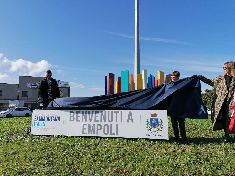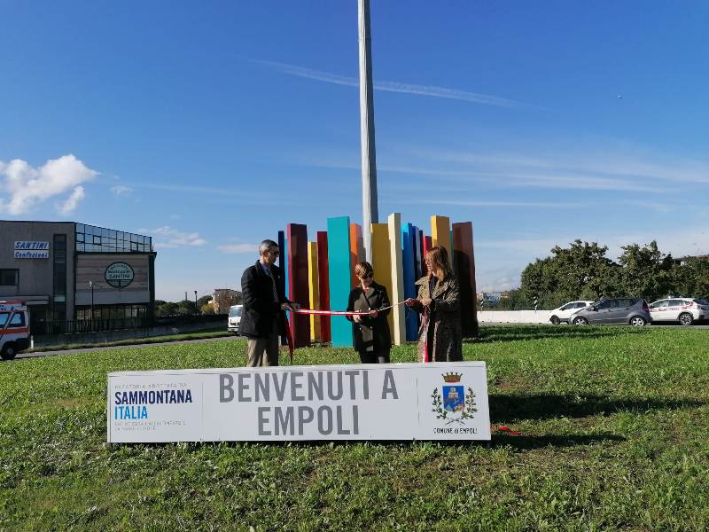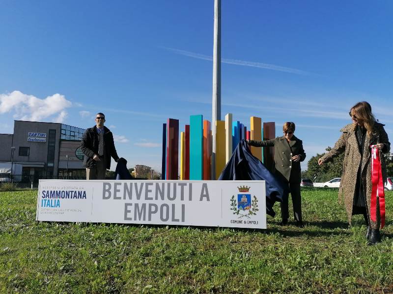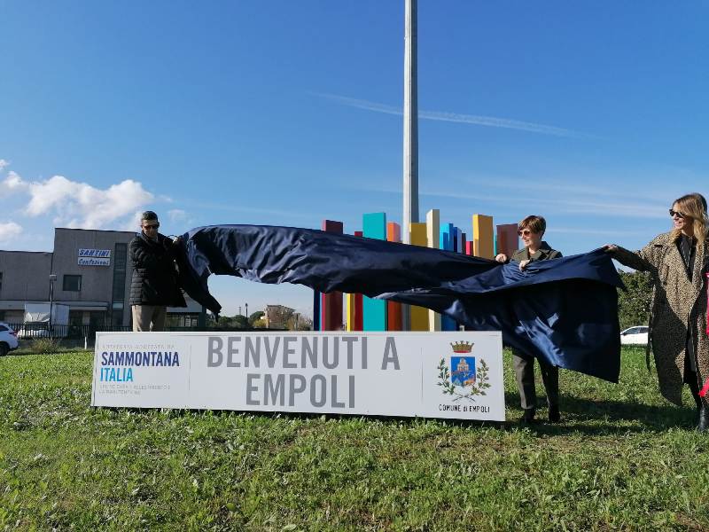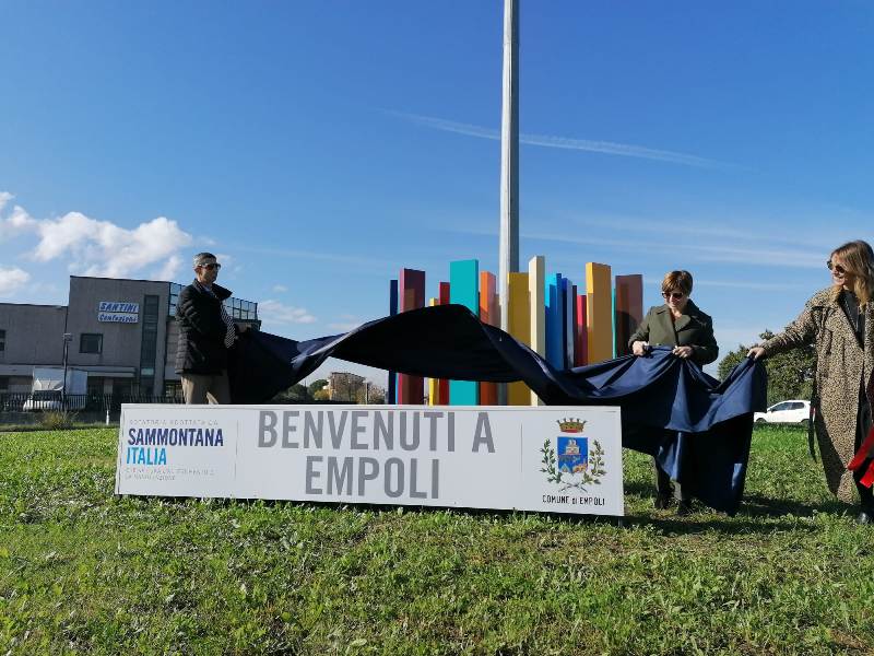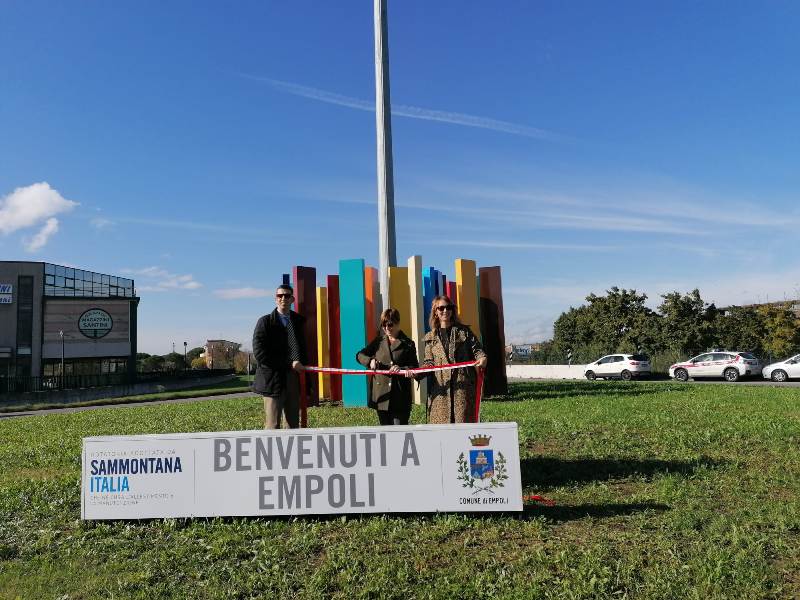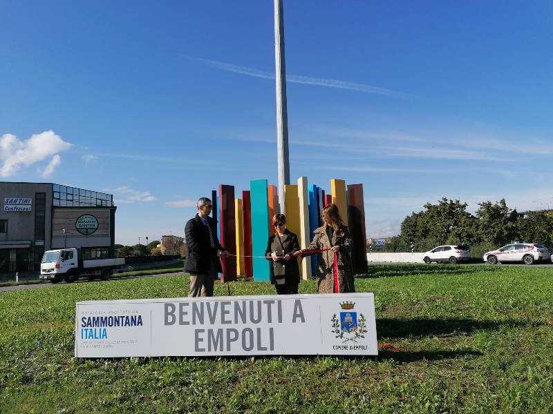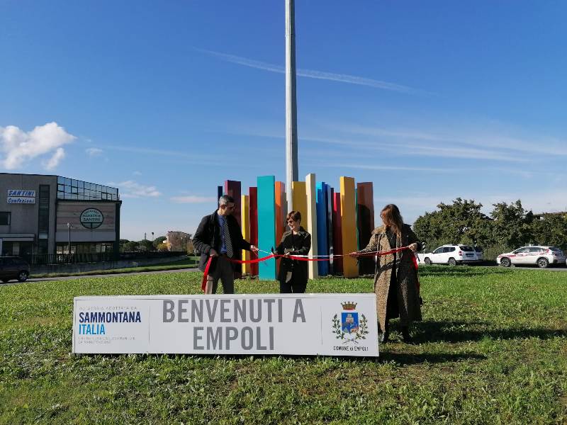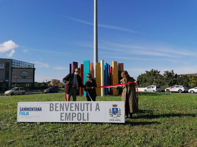 'Benvenuti a Empoli', è il messaggio che accompagna l'installazione che vivacizza la rotatoria adottata da Sammontana nell'imbocco della statale Fi-Pi-Li. e nelle immediate vicinanze della storica azienda che produce gelati e leader nella croissanterie e pasticceria.