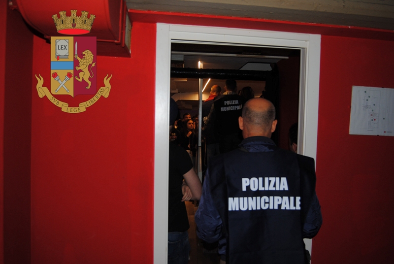 Le contestazioni di carattere penale hanno riguardato la presenza di un luogo di pubblico spettacolo senza seguire prescrizioni per la sicurezza pubblica e la mancanza di un'uscita di sicurezza libera e a disposizione. A essere denunciati sono stati G.B. di 39 anni e U.G. di 26, residenti in zona. Secondo quanto accertato dagli agenti, la porta era chiusa e bloccata da due paletti. Dava su una resede del locale con accumulati materiali di vario tipo. L'unica entrata e uscita era una scala larga un metro.