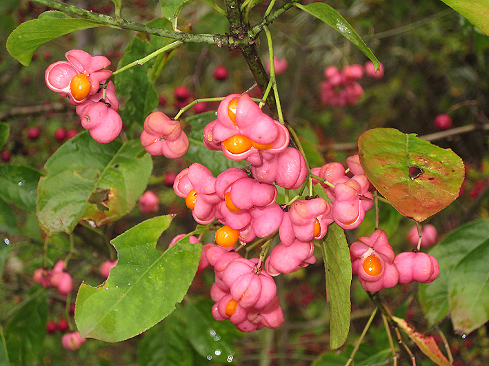 CHE COSA SI POTRÀ AMMIRARE - I piccoli arbusti lungo il percorso naturalistico sono pieni di frutti colorati che attirano merli e pettirossi: le rosse “meline” del biancospino, le capsule fucsia della fusaggine, simili ai berretti dei preti di una volta, le drupe del laurotino dai riflessi bluastri.
