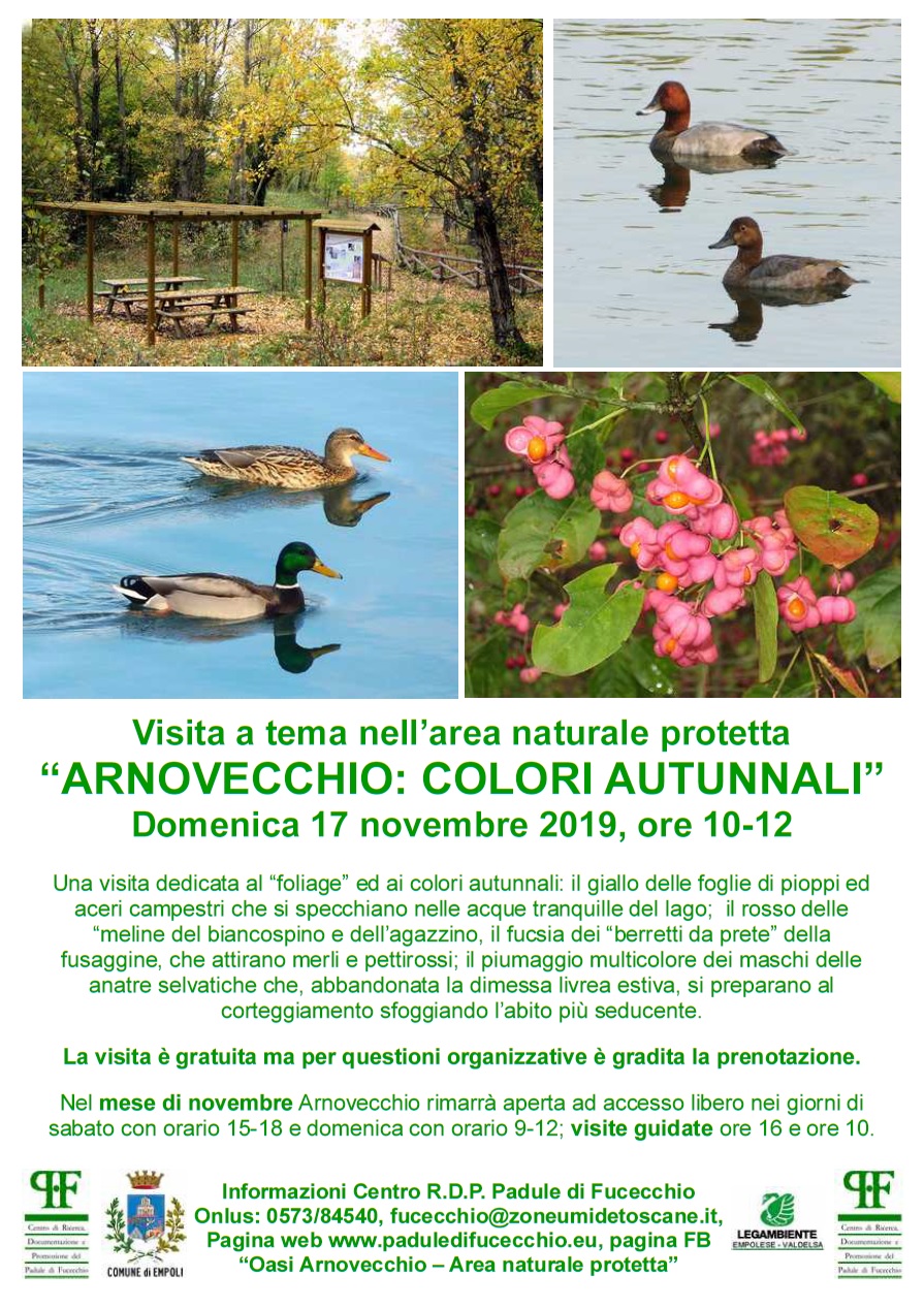 GLI ORARI DI APERTURA DI NOVEMBRE - Nel mese di novembre l'area naturale protetta di Arnovecchio è aperta il sabato pomeriggio dalle 14 alle 17 e la domenica mattina dalle 9 alle 12, ingresso libero; per gli interessati, rispettivamente alle 15 e alle 10, sono anche possibili visite guidate gratuite.