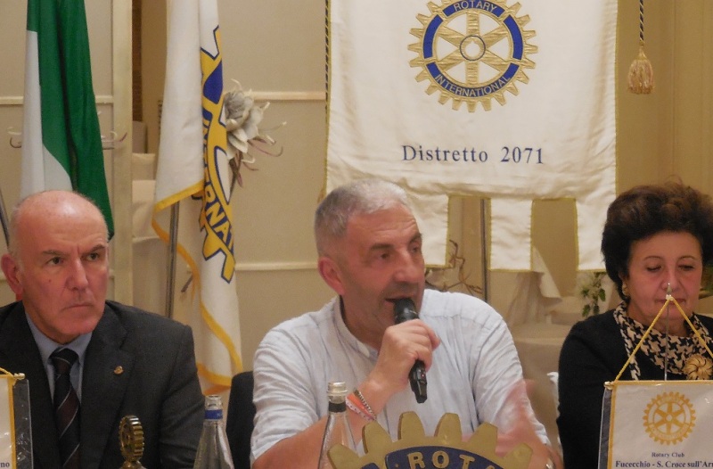 Si è soffermato molto sul tema “Ludopatia: un’emergenza dei nostri tempi”. Finito il suo intervento, il Presidente Marco Sansoni gli ha consegnato, come ogni anno, per conto del Club Rotary Fucecchio-Santa Croce S.A., 200 buoni acquisto per generi alimentari da 10euro l’uno. I buoni acquisto saranno consegnati alle famiglie che si trovano in difficoltà. Presenti alla serata oltre al Presidente del Club, Soci e Amici.