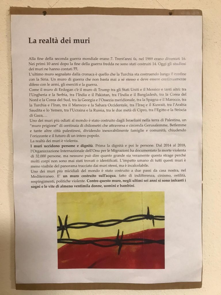 Sempre in Biblioteca, seguendo la proposta del Coordinamento nazionale degli enti locali per la pace e i diritti umani, sono stati affissi alcuni spunti e suggerimenti, tra cui un decalogo sui muri, il racconto dei giorni dell'abbattimento del muro di Berlino, alcuni cenni storici e culturali sull'evento ed è stato predisposto uno spazio dove i ragazzi che frequentano la Biblioteca e tutti i cittadini possono lasciare le loro riflessioni.