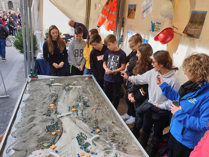 In un ampio spazio coperto, con il supporto di Flumina, lo speciale dispositivo ideato dall’Associazione Eta Beta Onluns, i visitatori young, potranno progettare case e ponti, costruire fabbriche e chiese, gestire la vegetazione, pianificare lo sviluppo del territorio, e, in questo modo, toccare con mano gli effetti che le loro scelte possono avere sui corsi d’acqua.