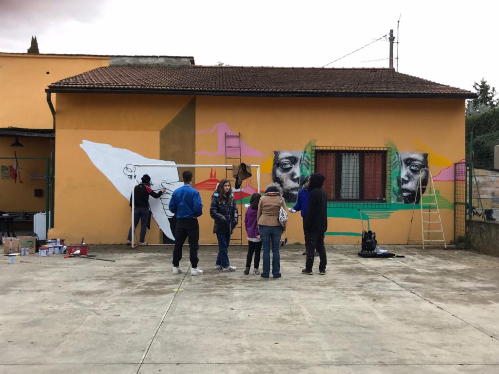 L’intervento fa parte di Ritratti di Città, progetto a cura di Associazione Culture Attive in collaborazione con Associazione Mixed Media, nell'ambito di Toscanaincontemporanea2019, ciclo di attività che fino a novembre porterà le arti visive nei luoghi della cultura della Città delle Torri e nelle sue immediate vicinanze.
