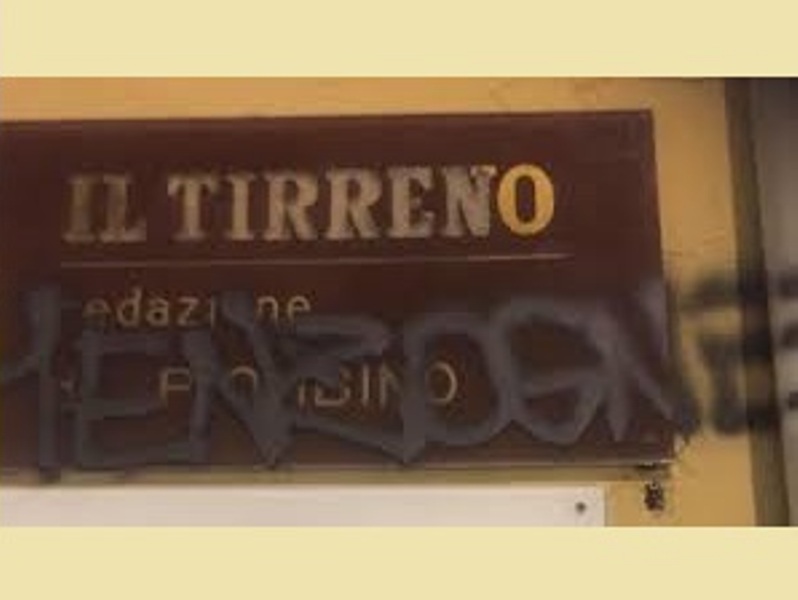 La targa del quotidiano Il Tirreno affissa fuori dalla sede del giornale a Piombino è stata imbrattata da ignoti. La scritta 'Menzogne' è stata vergata con una vernice spray blu. Scoperta la notte scorsa, è stata presentata denuncia ai carabinieri.