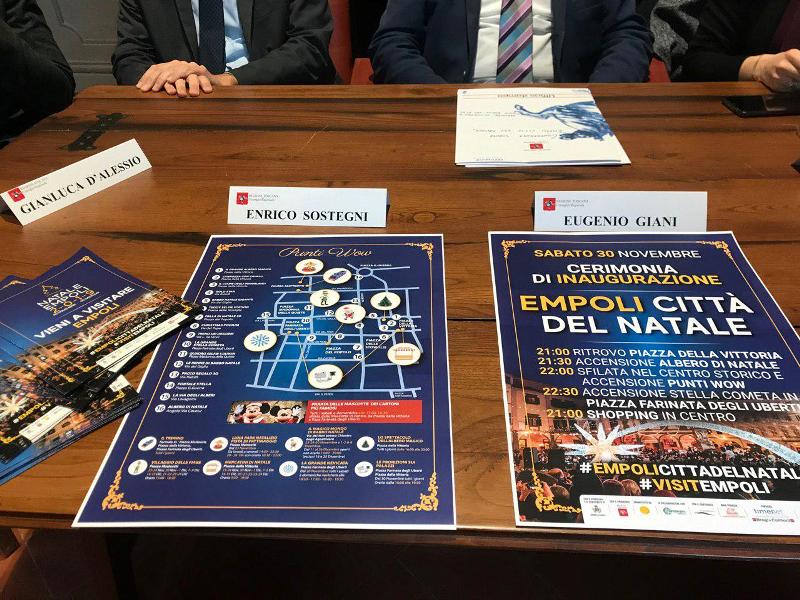 A presentare il Natale a Empoli, che trasformerà la città in un grande mercato natalizio, con attrazioni e iniziative dedicate a grandi e piccoli, sono intervenuti Enrico Sostegni, consigliere regionale; Brenda Barnini, sindaco di Empoli; Antonio Ponzo Pellegrini, assessore al commercio e alle attività produttive del comune di Empoli; Gianluca D’Alessio, responsabile Confesercenti empolese valdelsa; Nicola Nardini ed Eros Condelli, rispettivamente presidente e coordinatore eventi dell’associazione Centro storico Empoli.