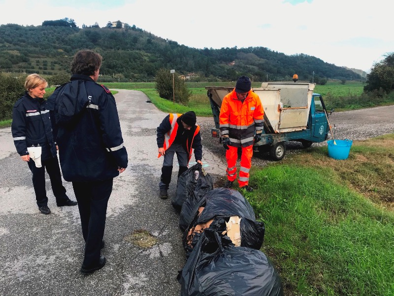 In Via Usciana invece sono stati rinvenuti quattro sacchi neri contenenti ritagli di pellame, carta, potature di verde e altri vari materiali. Poco più avanti, in mezzo ad un canneto, è stato ritrovato un altro sacco abbandonato contenente vestiti.