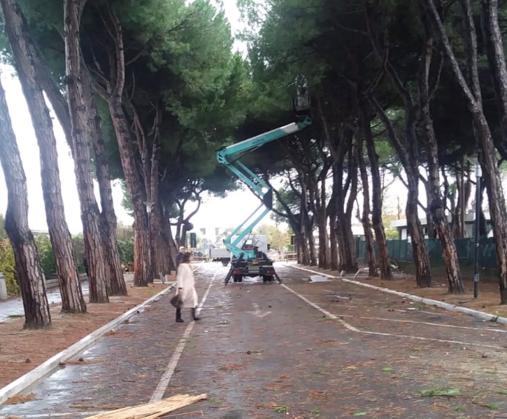 Mattinata di lavoro straordinario per gli operatori di Nausicaa Spa alle prese coi danni della tromba d'aria e del forte vento della notte che ha colpito la città e Marina di Carrara, in particolare. L'intervento più gravoso da parte della municipalizzata del Comune, andato avanti per tutta la mattina, è stato quello in via Modena dove una squadra con un carroscala ha provveduto a rimuovere dalle chiome dei pini e dalla strada i detriti del vicino hotel Atlantic. Inoltre gli operatori hanno tagliato i rami pericolanti e rimosso i molti che erano caduti a terra.