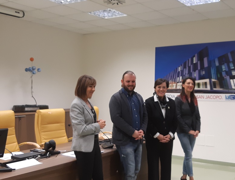 La scultura è stata collocata nella Sala Cinzia Lupi che si trova al terzo piano dell’ospedale, durante una cerimonia a cui questa mattina era presente anche Andrea, il figlio dell’ex direttore dell’ospedale scomparsa qualche anno fa e a cui la sala è intitolata. C'erano anche il direttore del presidio pistoiese, Lucilla Di Renzo, la referente Aisla di Pistoia, Daniela Morandi, il critico d'arte Lodovico Gierut e per l’Associazione Culturale Ipazia, Sabrina Ulivi, oltre naturalmente all’artista Clara Mallegni. "E' nostra intenzione - ha dichiarato il direttore Di Renzo ringraziando Aisla e l'artista per la donazione - far diventare l'ospedale sempre più permeabile a varie forme di arte".