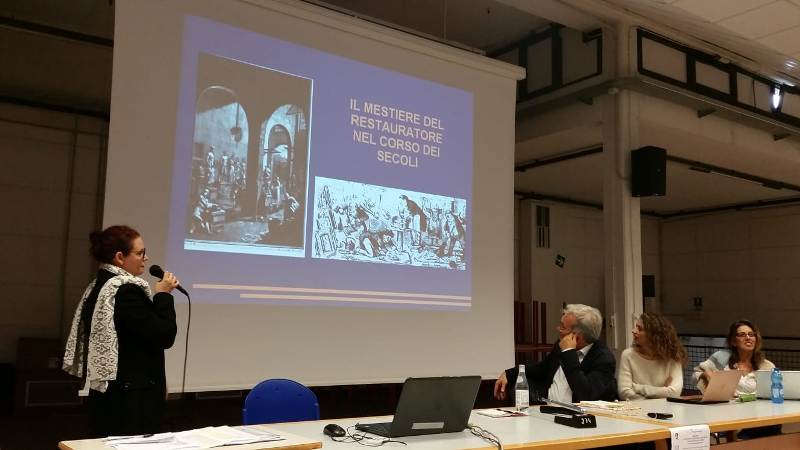 L'incontro, promosso dall'Agenzia formativa dell'Istituto, ha inaugurato il Corso Propedeutico alla Conservazione e al Restauro dei Beni culturali, giunto alla quarta edizione e rivolto agli studenti e all'intera cittadinanza, che si terrà da Novembre ad Aprile presso i locali della scuola, a cura della restauratrice Sandra Pucci, nell’ambito del Piano Triennale delle Arti, cofinanziato dal MIUR.
