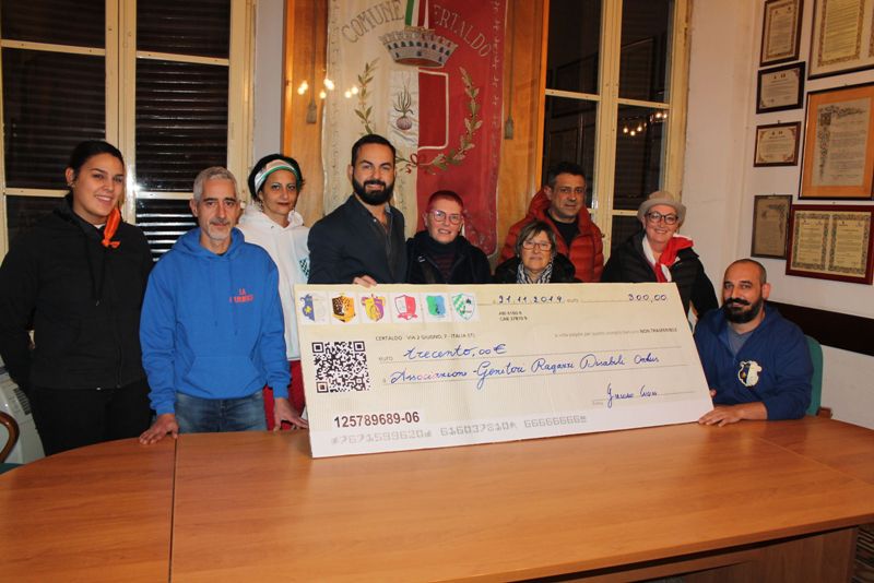 Si è svolta ieri in Sala Giunta una simbolica – e poi concreta – cerimonia di donazione. I sei rioni di Certaldo, hanno donato il ricavato della prima “Cena dei rioni” svoltasi sabato 28 settembre in Piazza Macelli, all’Associazione genitori giovani disabili onlus. Alla presenza dei rappresentanti dei sei rioni - L'Alberone, La Canonica, I Cipressi, Le Fonti, I' Mulino, Il Vicario - del sindaco di Certaldo, Giacomo Cucini, l’assegno è stato ritirato, per l’Associazione, dalla presidente Marzia Malatesti e da Adriana Salvadori.