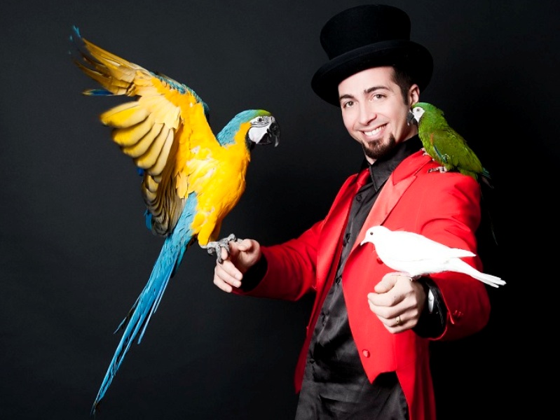 L’arte magica si fonde all’unicità dei suoi incantevoli pappagalli creando uno spettacolo originale, evocativo e coinvolgente. Punto di riferimento nella magia per bambini in cui stile, eleganza e talento lo rendono uno dei maghi più apprezzati nel panorama italiano ed internazionale dei family show.
