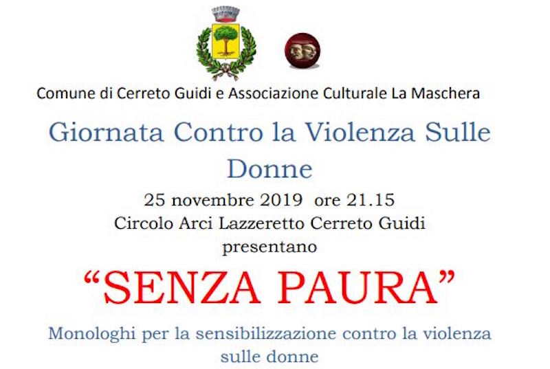 In occasione della Giornata contro la Violenza sulle donne, il Comune di Cerreto Guidi in collaborazione con l’Associazione culturale La Maschera, ha organizzato uno spettacolo in programma lunedì 25 novembre 2019 alle ore 21,15 al Circolo ARCI “Pietro Tozzini” di Lazzeretto.