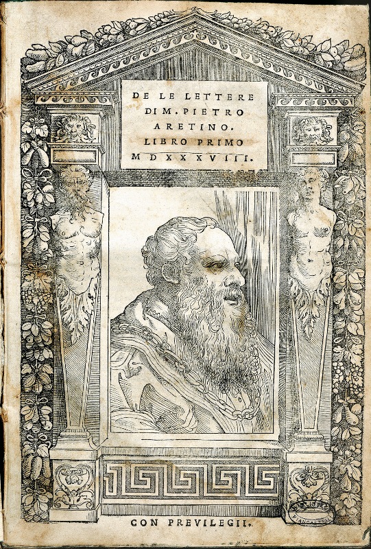 Dopo il Sacco di Roma del 1527, quando era già stabile in Laguna, egli riesce a integrarsi alla perfezione in un sistema politico e propagandistico che lo vede collaborare con Tiziano e Sansovino alla renovatio urbis del Doge Andrea Gritti. D’altro canto, intuendo le potenzialità offerte dall’industria tipografica veneziana, cambia radicalmente la sua singolare carriera di letterato, a questo punto caratterizzata da un rapporto diretto con l’universo delle arti figurative nei panni di accreditato mediatore fra botteghe e committenti. Così negli anni ’30, forte dell’alleanza con l’editore Francesco Marcolini, Aretino riesce a crearsi un profilo di “segretario del mondo” tributato e temuto ovunque, dai piccoli e dai grandi. Il dominio di un eloquio volgare di incomparabile incisività si vuole ora esteso a tutti i generi letterari che pratica simultaneamente con totale disinvoltura: escono così a stretto giro le commedie (l’edizione della Cortigiana è del 1534), i dialoghi pornografici (Ragionamento e Dialogo escono tra il 1534 e il 1536), le Lettere (il primo libro è del 1538), le parafrasi bibliche e le riscritture agiografiche (pubblicate tra il 1534 e il 1543).