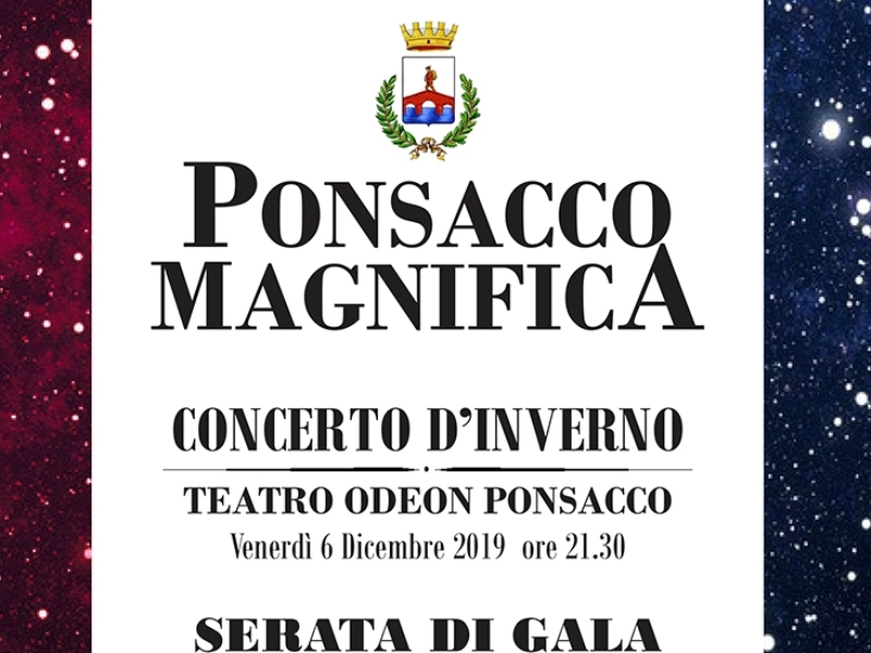 Venerdi 6 dicembre 2019, alle ore 21.30 presso il Teatro Odeon di Ponsacco si terrà il concerto d'inverno 'Ponsacco Magnifica'.