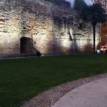 Viene valorizzato il tratto delle mura storiche attraverso una nuova ‘fascia di rispetto’ in ghiaia che corre lungo la parete, con corpi illuminanti a terra, come già avvenuto in Piazza XXIV Luglio. Sarà previsto l’abbattimento di alcune barriere architettoniche e sarà ampliata l’area del piccolo anfiteatro per creare un continuum con la piazza vicina.