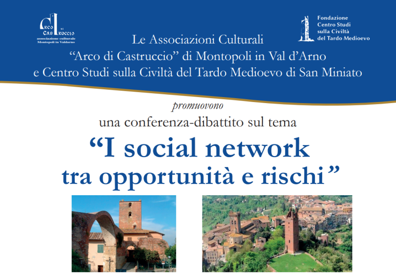 'I social network tra opportunità e rischi' sarà il tema della serata, introdotta dal Presidente di 'Arco di Castruccio' Marzio Gabbanini. A seguire interverranno il Vescovo di San Miniato Andrea Migliavacca, Monsignor Andrea Cristiani fondatore del movimento Shalom e la professoressa Maria Grazia Messerini, Presidente dell'Università del tempo libero di San Miniato.