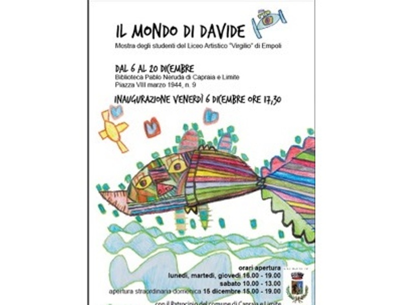 Sarà inaugurata venerdì 6 dicembre alle ore 17.30 alla biblioteca comunale “Pablo Neruda” di Limite sull’Arno la mostra espositiva “Il mondo di Davide” in ricordo di Davide Degl’Innocenti, scomparso nel 2018.