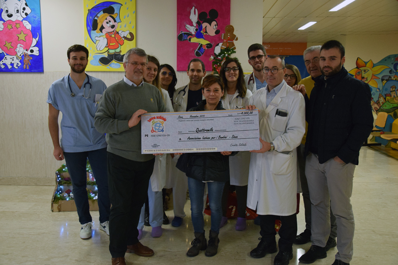 A ritirare l’assegno sono stati il professor Salvatore Grosso, presidente dell’associazione “Insieme per i bambini” e direttore della UOC Pediatria e i professionisti dello stesso reparto dell’Azienda ospedaliero-universitaria Senese.