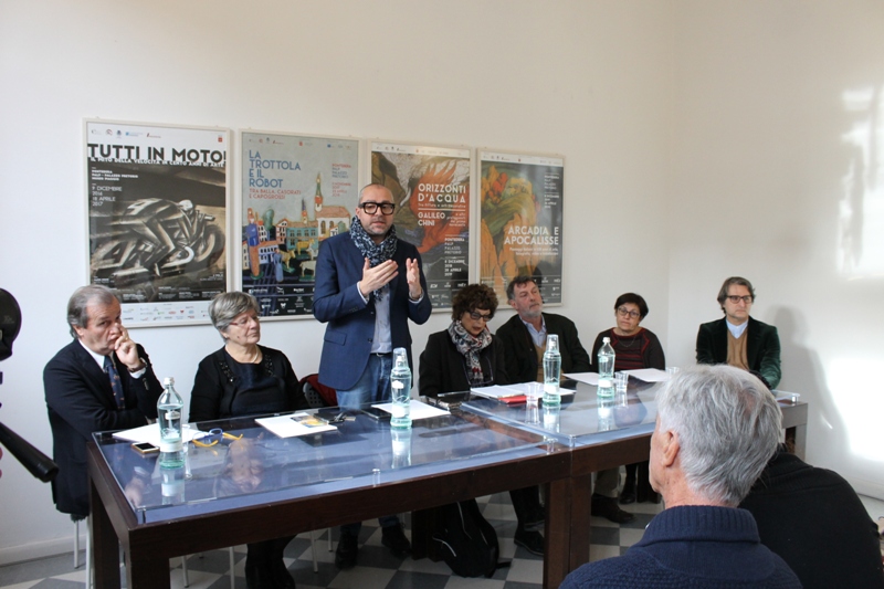 Presenti questa mattina all'illustrazione della mostra la Presidente della Fondazione per la Cultura di Pontedera Daniela Pampaloni, il coordinatore generale della mostra Andrea Modesti, i curatori dell'esposizione Daniela Fonti e Filippo Bacci di Capaci e il sindaco di Pontedera Matteo Franconi.