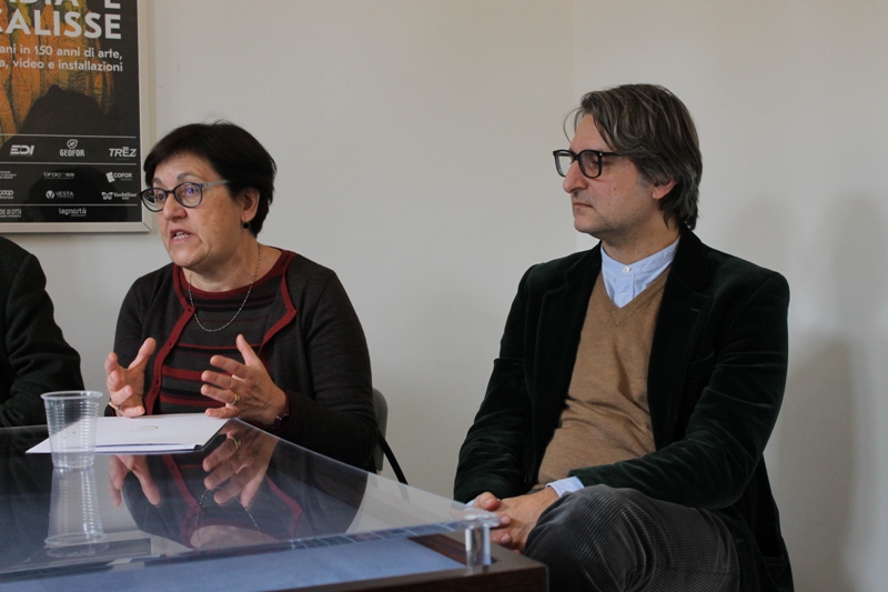 In seguito ci sono stati gli interventi dei curatori della mostra. Daniela Fonti, professoressa alla Sapienza di Roma, ha descritto il percorso che affronterà questa galleria dedicata al paesaggio, soffermandosi sui tecnicismi delle opere e contestualizzando tutto in un preciso momento storico. Ogni sala infatti ha una storia sua che si chiude quando si esce per scorrere in quella successiva. Passaggi distinti che però, dall'inizio alla fine, devono essere interpretati con una chiave di lettura unica, come il tempo che scorre e che cambia ciò che ci circonda e il modo di rappresentarlo graficamente. "Il titolo - ha spiegato la curatrice Fonti - è ambiguo: arcadia sta per la rappresentazione del paesaggio italiano mentre apocalisse è l'arrivo della modernità, che rompe con il passato ed esprime timore per i cambiamenti del futuro. Con i Macchiaioli Arcadia rompe con la tradizione quindi il percorso inizia dal vero naturale alla dimensione divisionista". Ma la mostra non si ferma al primo dei cambiamenti, infatti è un continuo alternarsi tra Arcadia e Apocalisse, tra maniera classica di figurazione e rottura con il passato, fino ai movimenti moderni e all'uso della fotografia: "Il paesaggio negli anni fra le due guerre subisce trasformazione e violenza. Parliamo delle città nuove, la storia entra nell’arte perché la fotografia entra nella rappresentazione" come ha detto Fonti.