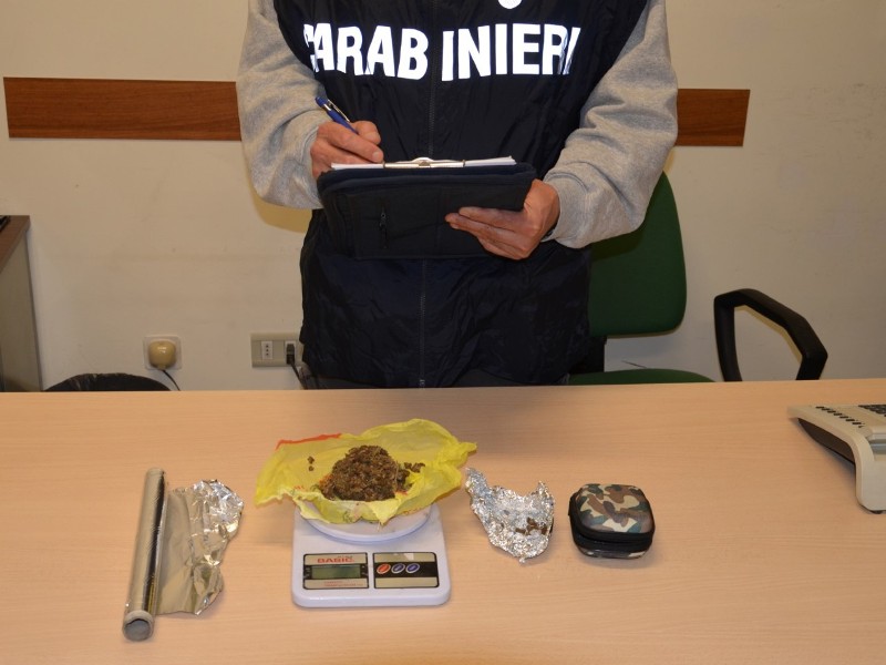 I militari hanno perquisito quella parte dello stabile - un seminterrato del palazzo dove il trentenne abita -, hanno trovato e sequestrato quasi 54 grammi di marijuana nascosta in una custodia per macchina fotografica, un bilancino di precisione e materiale vario per il confezionamento delle dosi.