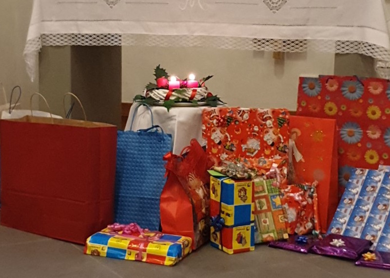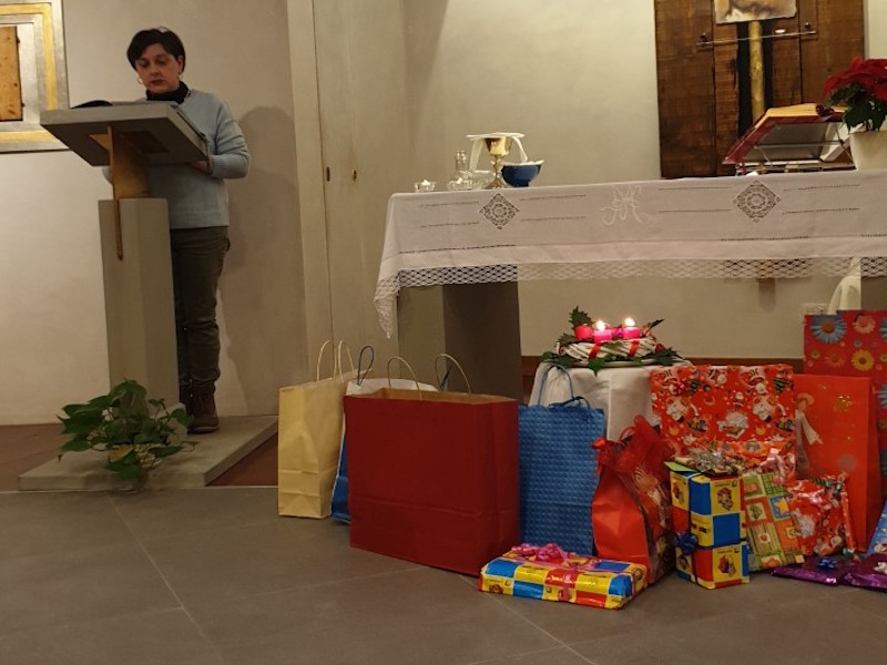 Ogni bimbo ha portato molti doni che sono stati posati sotto l'altare e che verranno poi consegnati ai piccoli ospiti dell'ospedale pediatrico di Firenze.