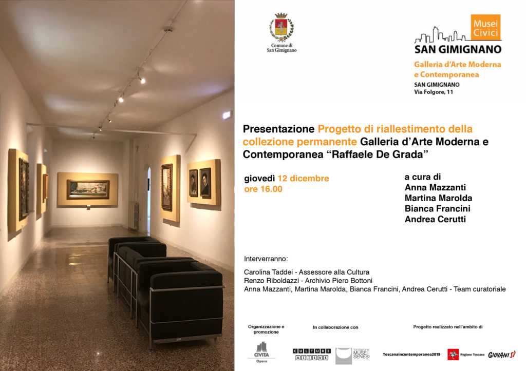 Il riallestimento ha l’obiettivo di far fruire la galleria civica sangimignanese in modo diverso valorizzando le eccellenze contenute nel museo come la donazione Pacchiani, di cui fanno parte le opere dei principali autori del '900, le opere vincitrici del Premio De Grada, gli autori del Novecento che hanno lavorato a San Gimignano e la veduta, rivoluzionando il percorso attraverso un apparato informativo innovativo. Cambierà del tutto la veste informativa che accompagna i visitatori attraverso le sale: nuovi pannelli, un diverso apparato didascalico e un centro di documentazione multimediale con cataloghi e approfondimenti sui vari autori. Per il nuovo allestimento sono previste anche due sale dedicate a due grandi architetti del Novecento: Piero Bottoni e Ludovico Quaroni che disegnarono i piani strutturali di San Gimignano tra gli anni Cinquanta e gli anni Ottanta.