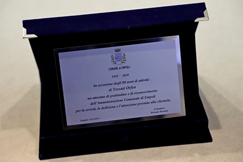 80 anni per Orfea Tessuti, targa e licenza di inizio attività per uno dei negozi storici del centro di Empoli