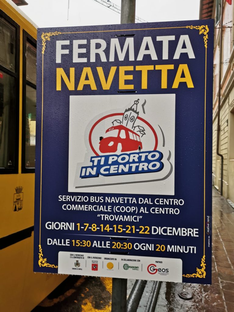 SERVIZIO BUS NAVETTA – Per tutti coloro che abitano fuori dal centro è attivo il servizio di bus navetta, che parte dal Centro commerciale Coop e arriva fino alla fermata al ‘Trovamici. I giorni rimasti del mese di dicembre: 14,15,21 e 22 ogni venti minuti dalle 15.30 alle 20.30.