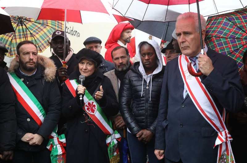 “Firenze non è una città razzista – ha sottolineato la vicesindaca Cristina Giachi – ma purtroppo questo germe strisciante c'è e costruisce discorso ed opinione. Questo genera una grande confusione che disorienta le menti più fragili e deboli culturalmente, orientandole alla paura e alla rabbia, quando non attiva gesti di criminalità folle come nel caso di piazza Dalmazia. Ma oggi il clima è addirittura peggiore di 8 anni fa e molto di questo consenso facile potrebbe scivolare in direzioni che non possiamo neanche immaginare”. “Per questo – ha aggiunto la vicesindaca – è necessaria molta sorveglianza e senso di responsabilità da parte di tutti. Il fatto che le istituzioni si ritrovino qui stamani è la prova che la società ha gli anticorpi per sconfiggere questo male. Noi abbiamo il dovere di custodirli, di coltivarli e proporli alla cittadinanza come una via positiva per rispondere alla paura e alla diffidenza”.