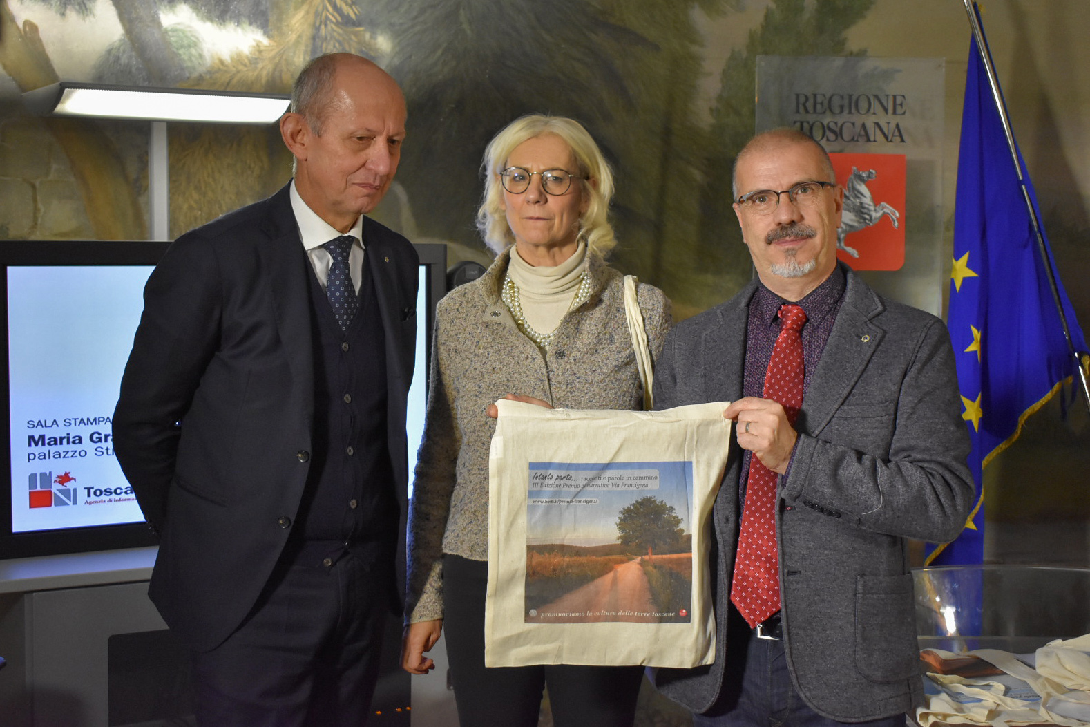 Hanno presentato l’edizione 2019 Monica Barni, Vicepresidente e Assessora alla Cultura della Regione Toscana, Stefano Ciuoffo, Assessore alle attività produttive e al Turismo della Regione Toscana, Luca Betti, editore e ideatore del Premio Francigena.