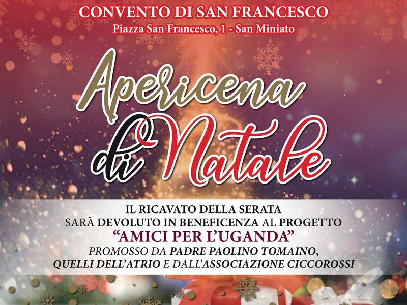 Anche quest’anno, con l’avvicinarsi del Natale, Opera SpathaCrux Onlus organizza il tradizionale apericena natalizio per giovedì 19 dicembre a partire dalle ore 19:30, presso il suggestivo Convento di San Francesco in piazza San Francesco a San Miniato.
