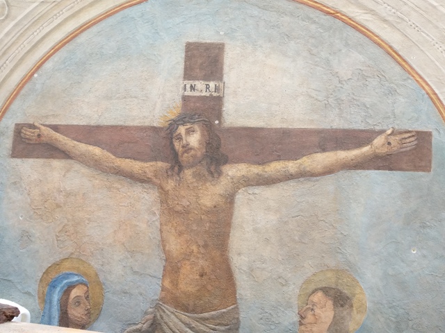Torna all'antico splendore l'affresco che si trova sul muro esterno di via Arcivescovato a Lucca e raffigurante la Crocifissione. L'assessore al Decoro Urbano Gabriele Bove e il presidente del Consiglio Comunale Francesco Battistini hanno effettuato un sopralluogo durante le fasi finali dei lavori che restituiscono alla città un'opera d'arte nella sua interezza.
