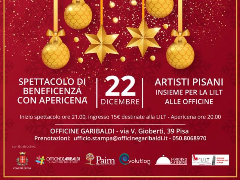 L’associazione culturale Officine Garibaldi festeggia questo Natale organizzando per domenica 22 dicembre, l’iniziativa “Artisti Pisani insieme per la LILT”.