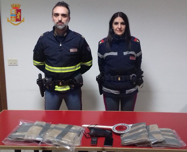 L'uomo è stato arrestato dalla polstrada per traffico di droga. Sequestrati gli stupefacenti ritrovati e alcuni telefoni cellulari dell'uomo. Le indagini sono ancora in corso.