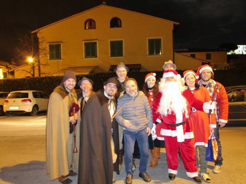 Il giorno della vigilia di Natale consegnerà i regali ai bambini di Ponte a Elsa, accompagnato dal suono delle cornamuse.