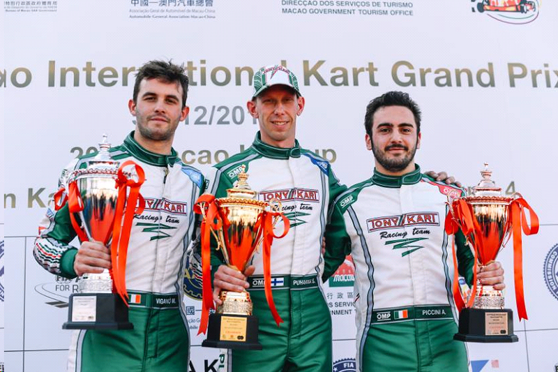 Nel tradizionale appuntamento del Macao International Kart Grand, a Coloane, i nostri piloti ufficiali occupano i primi quattro posti della classifica finale della categoria KZ. La vittoria va a Puhakka davanti a Viganò e Piccini, quarto Milell.