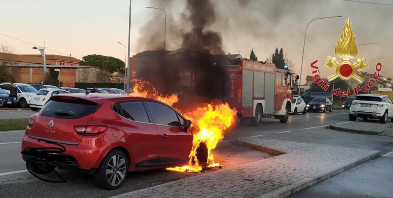 I vigili del fuoco sono intervenuti alle ore 17 circa a Ponsacco, in Via Di Gello, per un incendio auto. La conducente della propria autovettura ha visto uscire del fumo da sotto il cofano e si è immediatamente fermata in una piazzola di servizio. Il primo tentativo di spegnimento è stato effettuato con un estintore ma c’è voluta la squadra dei vigili del fuoco per poter spegnere completamente l’incendio. Tutto il vano motore della vettura è andato distrutto. Non ci sono danni a persone.