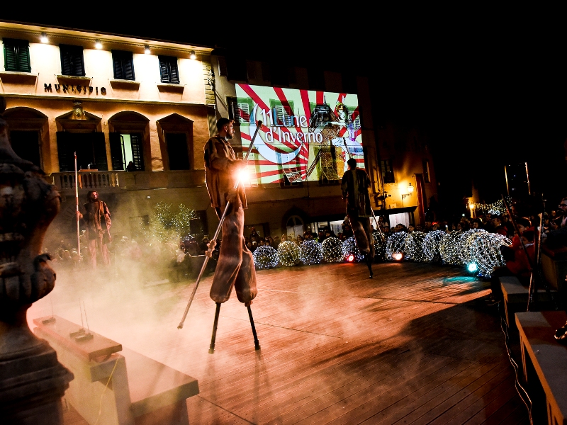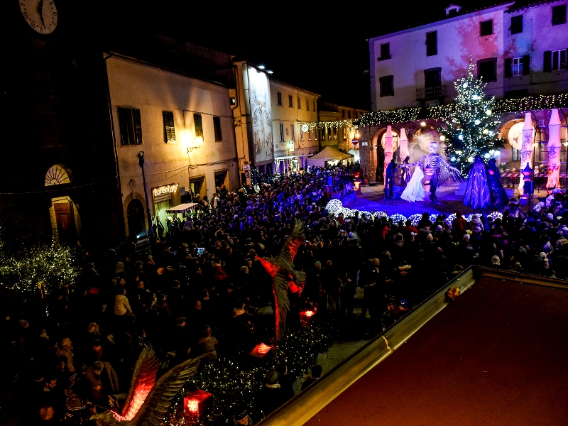 Il 26 dicembre il centro storico di Peccioli sarà acceso dalle figure, dalle immagini e dalle luci surreali ed eteree delle Invasioni Lunari, dalle clownerie di Circo Pacco che si esibirà in uno spettacolo di circo contemporaneo, dallo spettacolo dedicato ad un mondo senza plastica della Compagnia Areté, dalle attività degli Arcieri storici di Peccioli, dalla musica della della BadaBimBumBand, dalla magia della bolle di sapone della Compagnia Ribolle, dalle gag di Risate in Movimento, dalle storie per burattini a guanto e contastorie di Alessandro Gigli, padre del teatro di strada. Molti saranno i laboratori che verranno realizzati: dalla costruzione di scenografie, alla sperimentazione del disegno con la luce, ad un laboratorio di sartoria, fino alla costruzione di una valigia di sogni, all’ascolto di Fiabe in Sound6D, uno speciale cuscino che vi farà immergere nel suono a 6 dimensioni.