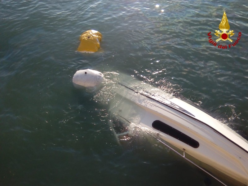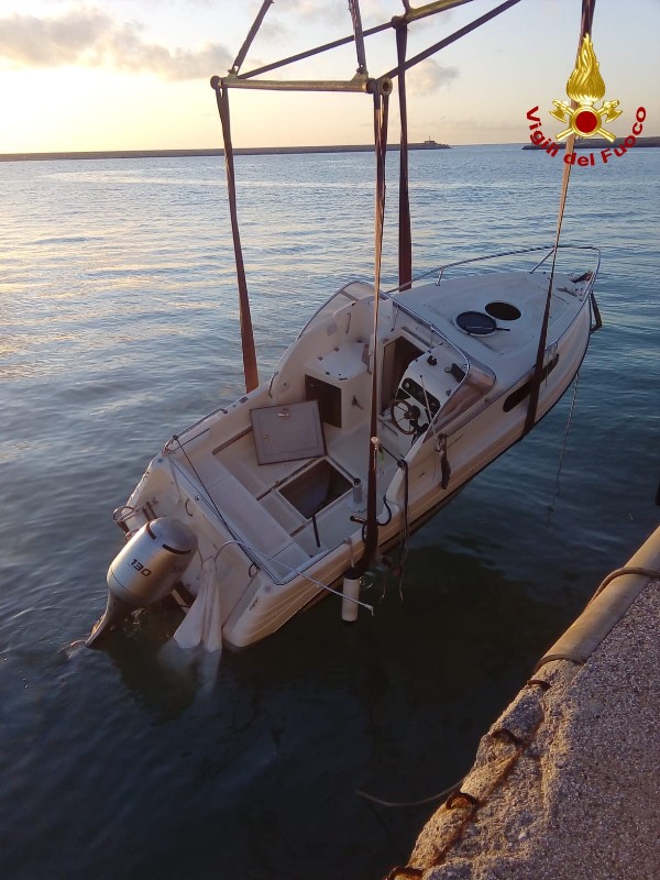 Le tre persone a bordo erano già state soccorse dalla Capitaneria di Porto e l'imbarcazione è stata rimorchiata dall'unità navale dei vigili del fuoco fino al Molo Italia del porto.