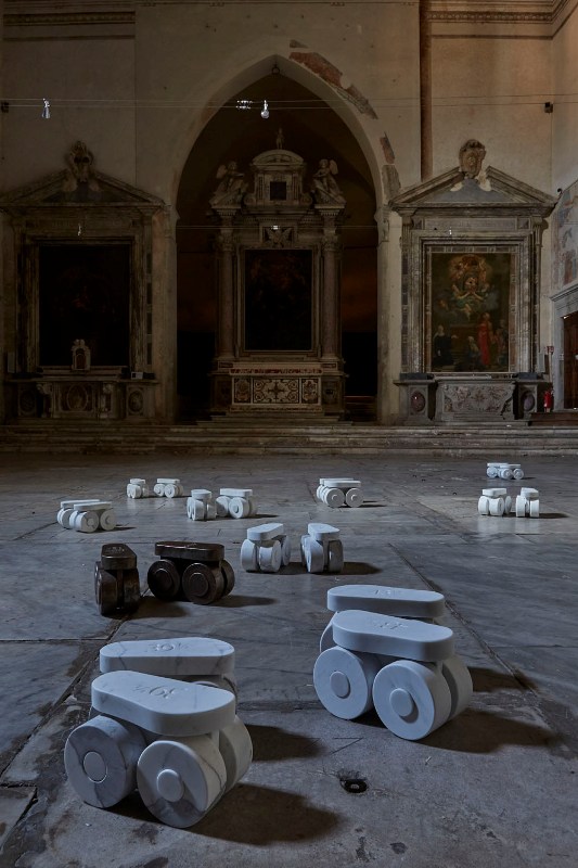 Sculture sospese nel nulla che volano solitarie sopra Marina di Pietrasanta, zebre a loro agio nella Chiesa di Sant’Agostino, creature che cambiano luogo e direzione, vagabonde e indipendenti anche se apparentemente integrate in ambienti diversi, erratiche. “Erratico” è appunto il titolo della mostra di Bart Herreman (27 fotografie di cui 6 di grandi dimensioni) e dello scultore Umberto Cavenago (20 sculture),  che sarà esposta fino al 26 gennaio 2020 a Pietrasanta (Lu), in Piazza del Duomo, nella  Chiesa e il Chiostro di Sant’Agostino. Una mostra che dalla sua inaugurazione, lo scorso 26 ottobre, ha già raggiunto la quota di oltre 6000 visitatori a sottolineare come le opere dei due artisti stanno interessando il pubblico. Scenari suggestivi che sono il terreno di confronto di due artisti che, pur operando in campi diversi, condividono una comune ricerca legata alla sintassi dello spazio, della materia e un approccio strumentale alla tecnologia. In più le opere di Herreman e Cavenago,  sono state disposte secondo un allestimento concepito espressamente per gli spazi di Pietrasanta con opere realizzate ad hoc. Le sculture e le installazioni di Umberto Cavenago nascono per dialogare con la dimensione architettonica e utilizzano e sperimentano tutte le potenzialità tecniche, materiche e volumetriche della dimensione plastica. Una cifra stilistica che ha caratterizzato la sua poetica e condotto l’artista ad esporre in prestigiose sedi e rassegne nazionali e internazionali, dalla Biennale di Venezia del 1990, passando per il Martin Gropius-Bau di Berlino e la Biennale di San Paolo a quella di Johannesburg a cui si aggiunge  il Museo Reina Sofia di Madrid, il Museo Pecci di Prato e la Fondazione Pomodoro, solo per citarne alcune. Per Bart Herreman la fotografia non è uno strumento di semplice registrazione oggettiva della realtà, ma si inserisce in quel solco che dalle avanguardie storiche di inizio secolo (Man Ray, Moholy Nagy) prosegue per tutto il XX secolo fino ai nostri giorni nella promozione dello strumento fotografico come mezzo espressivo al pari di pittura e scultura. L’artista belga utilizza tutte le possibilità delle nuove tecnologie digitali per creare spazi fantastici ma verosimili, utilizzando la fotografia in una direzione pittorica, intervenendo cioè sulle singole componenti visuali, da quelle cromatiche a quelle luministiche e naturalmente sulla scelta e disposizione delle componenti “narrative” dell’”inquadratura”. Fotografie che sono entrate a  far parte di collezioni pubbliche e private a livello internazionale. “Entrambi gli artisti – spiegano il curatore Mauro Daniele Lucchesi e il critico  Alessandro Romanini -,propongono una strategia espressiva che intende coinvolgere lo spettatore in maniera attiva, costringendolo a crearsi una propria narrazione individuale, che lo scuota dall’apatia della percezione troppo distratta dall’invasione quotidiana d’immagini da parte dei mass-media e dei social network. Una dimensione – proseguono - in cui l’umano e l’animale possono convivere oppure dove forme plastiche non naturali, sono parte integrante di un edificio o di una piazza. Un nuovo percorso erratico come indica il titolo, e dove i due artisti hanno trovato a Pietrasanta un luogo ideale per ospitare le loro opere. Una città che ha un rapporto secolare con la bellezza e la sperimentazione formale, la storica capacità di produzione artigianale di scultura e architettura, l’approccio alla tecnica e alla tecnologia e la genetica predisposizione alla collaborazione fra artista e artigiano. Tutto questo – concludono -  rappresenta un humus fertile per una ricezione sensibile di forme espressive innovative”.