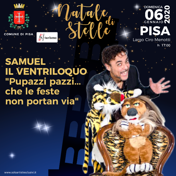 Nel giorno della Befana, lunedì 6 gennaio, l’appuntamento per i più piccoli è in Largo Ciro Menotti (dalle 17.00 alle 18.30) con lo spettacolo per bambini “Pupazzi pazzi … che le feste portan via”, con Samuel il ventriloquo. Si tratta dell’ultimo appuntamento del cartellone “Natale di Stelle” coordinato dal Comune di Pisa. Intanto a Tirrenia (piazza Belvedere, ore 14.30) sarà di scena “Arriva la Befana” appuntamento con giocolieri e truccatori e distribuzione ai più piccoli delle calze.