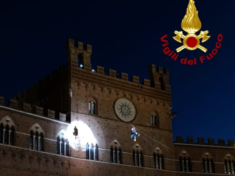 La discesa, inclusa e pubblicizzata all'interno del programma inerente gli eventi legati alle festività natalizie di Siena, è resa possibile grazie al personale Saf in collaborazione con altro personale fuori servizio del Comando di Siena e all'associazione Vigili del Fuoco di Siena