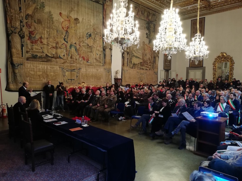L’evento si è tenuto nel Salone Carlo VIII, gremitissimo di studenti, autorità civili e militari, tra cui il presidente del Consiglio Regionale Eugenio Giani, il presidente del Consiglio Comunale Luca Milani, il presidente della Corte di Appello di Firenze Margherita Cassano, il procuratore generale di Firenze Marcello Viola, il rettore dell’Università di Firenze Luigi Dei, il senatore Riccardo Nencini e molti sindaci dell’area metropolitana fiorentina.