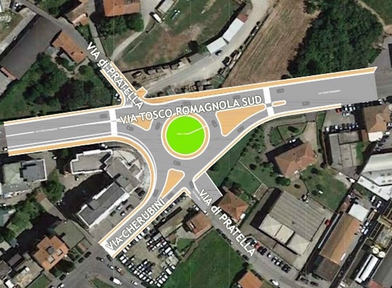 Siamo ancora al progetto preliminare e la rotatoria sarà posta all’altezza dell’attuale spartitraffico di Via Cherubini, comprendente anche le due intersezioni con Via della Pratella. La stima dell’investimento da parte del Comune è di 300.000 euro, un’infrastruttura già prevista nel piano delle opere pubbliche del 2020. Nei prossimi mesi saranno realizzati, da parte del settore lavori pubblici del Comune, i progetti definitivi ed esecutivi, con l’obiettivo di andare ad appaltare la rotatoria a Settembre e iniziare i lavori al termine dell’anno per vederla terminata nel 2021.