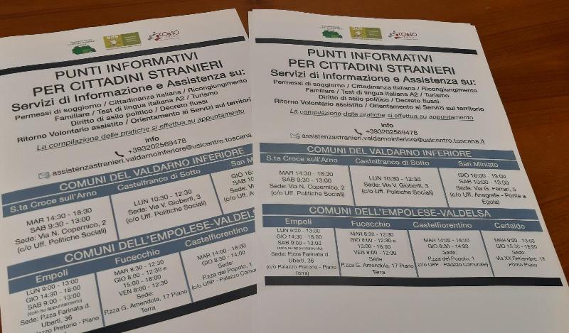 Diritto d'asilo, normative sull'immigrazione, ricongiungimento familiare, test di italiano e tanti altri temi. Per queste pratiche saranno attivati nei 15 comuni della Società della Salute Empolese Valdarno Valdelsa i punti informativi per stranieri. Sette sportelli a Empoli, Fucecchio, Castelfiorentino, Santa Croce, Castelfranco, San Miniato (questi già attivi) e Certaldo (partirà martedì 14 gennaio).